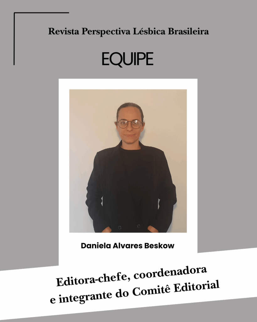 Daniela Alvares Beskow é escritora, cientista política e artista. Coordenadora do Laboratório de Teoria, editora-chefe e coordenadora da Revista Perspectiva Lésbica Brasileira e integrante do seu Comitê Editorial. Autora de capítulos de livros, ensaios, colunas e análises publicados em jornais, revistas e sites desde 2002. Desenvolve pesquisa na área de epistemologia, perspectiva e teoria lésbica desde 2015, realizando mapeamentos, propondo conceitos e produzindo atividades com o objetivo de difundir, fomentar e reconhecer o pensamento de teóricas, ativistas e artistas lésbicas brasileiras.